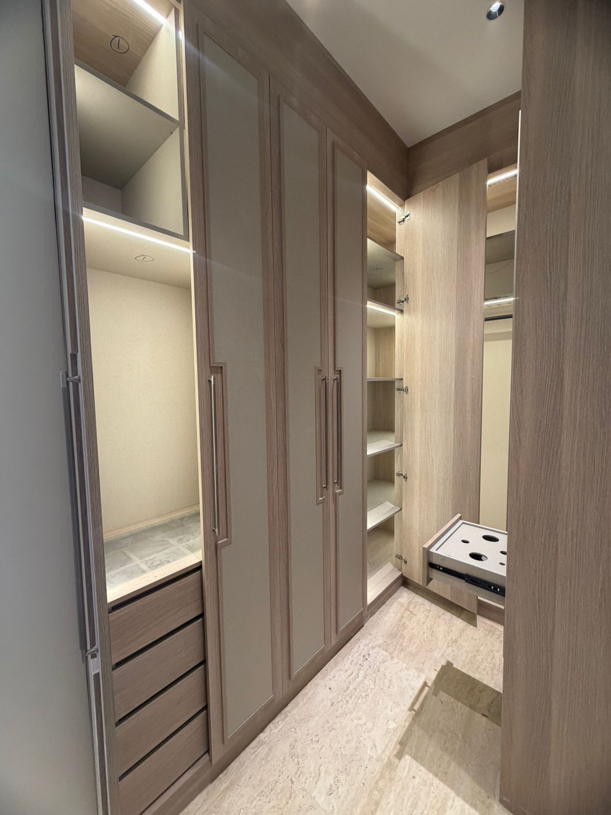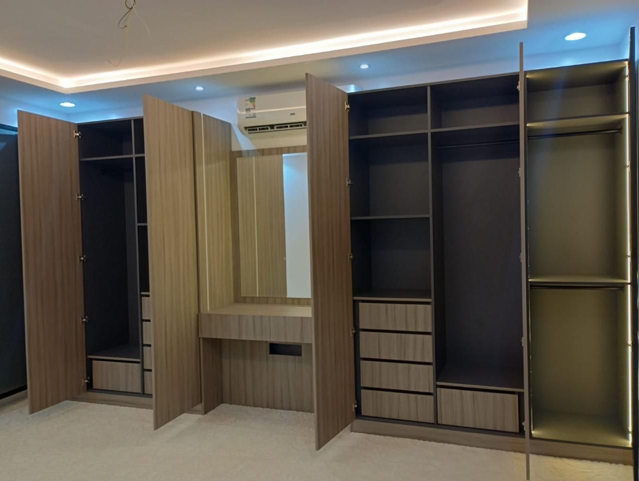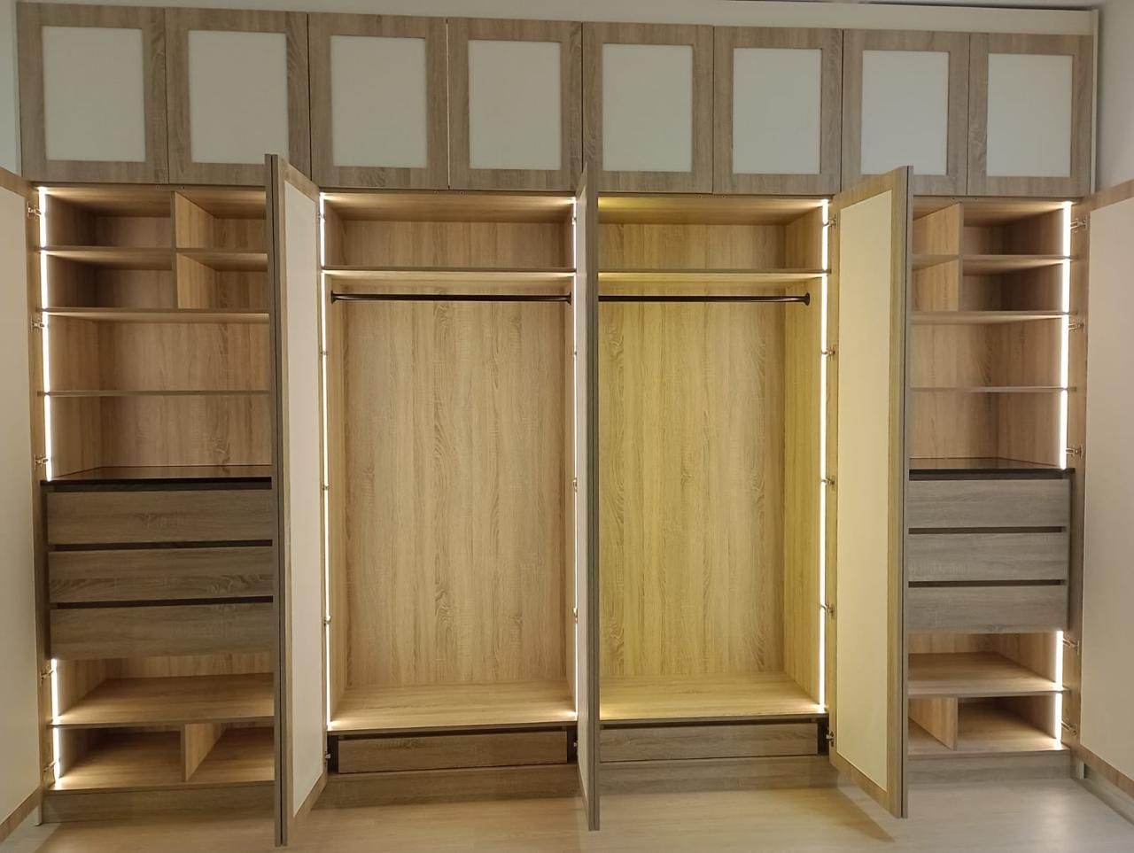 نقدم لك خزائن ملابس عصرية ومخصصة تُصمم وفق احتياجاتك ومساحة منزلك. نستخدم خامات عالية الجودة وتصاميم ذكية تجمع بين الأناقة والتنظيم، مع خيارات متعددة للأبواب (سحاب أو مفصلية) وتقسيمات داخلية عملية تشمل الرفوف، الأدراج، وعلاقات الملابس باستخاد اجود وامتن انواع الخشب.